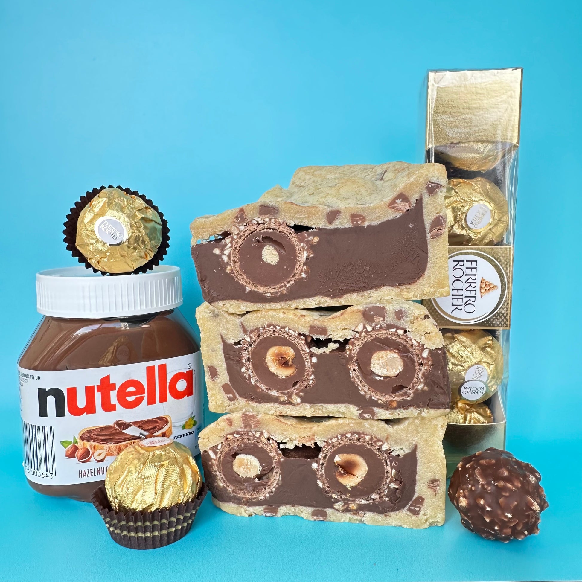 Our signature cookie dough stuffed with milk chocolate chunks, filled with Nutella infused milk chocolate filling and Ferrero Rocher chocolate.